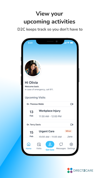Direct2Care är en mobilapplikation som erbjuder medlemmar tillgång till medicinska tjänster dygnet runt, oavsett plats. Appen är säker och följer HIPAA-reglerna, vilket garanterar integritet och skydd av användardata. Användare kan enkelt få vård för en mängd olika medicinska tillstånd, vilket gör den till ett praktiskt alternativ för personer som söker snabb och effektiv hjälp. Funktioner inkluderar möjligheten att få recept direkt till sitt apotek, samt tillgång till eVisit och eHälsoregister utan långa väntetider eller krångel med försäkringar.
